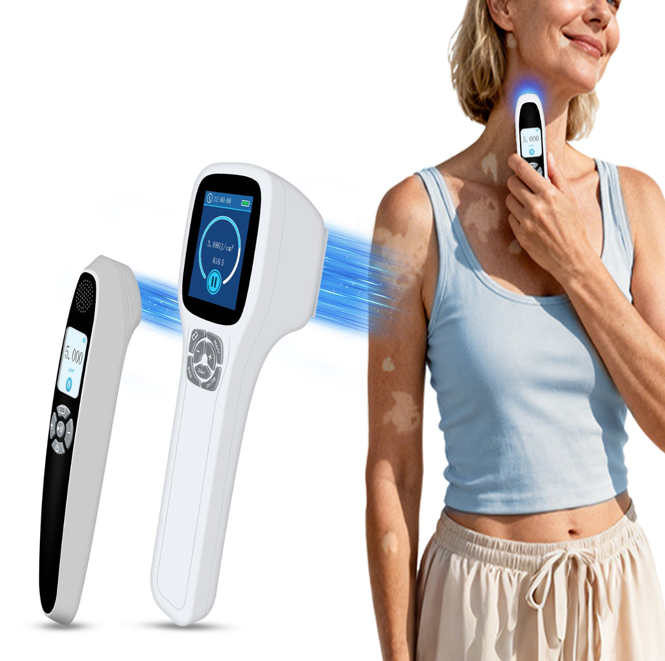 For skin conditions like Vitiligo, Psoriasis, Dermatitis, Eczema, etc.Fast, precise relief — without unnecessary skin exposure.Portable, non-invasive, and easy to use safely at home.