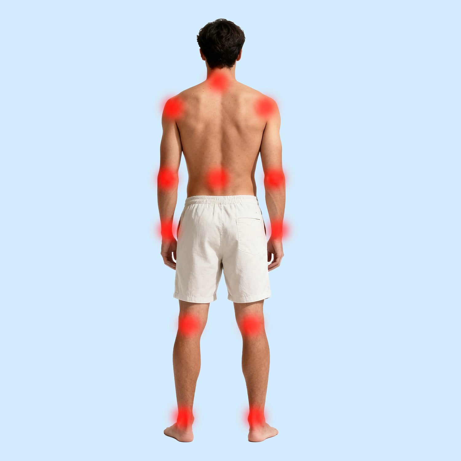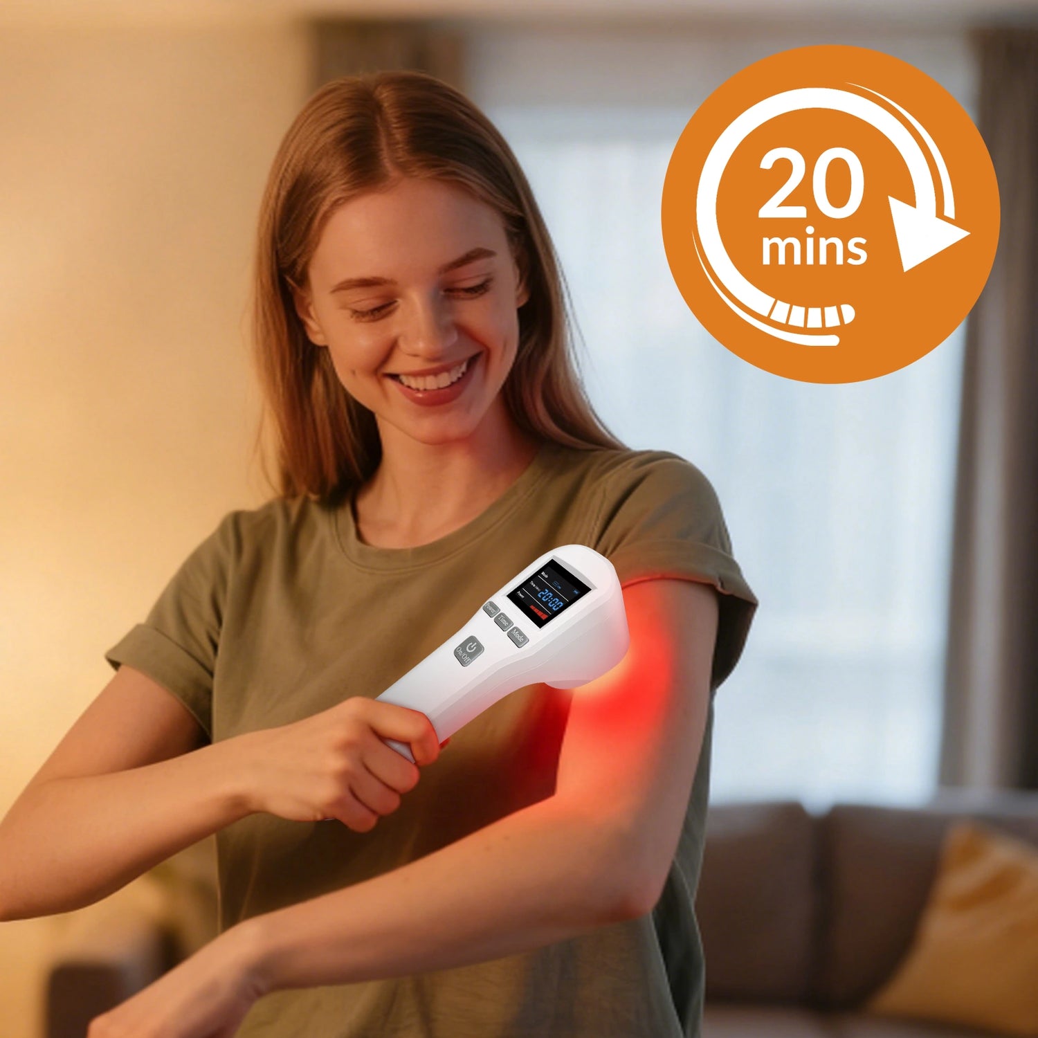 This professional-grade device features 20 high-precision diodes combining 650nm and 808nm wavelengths for optimal therapeutic effect. The 650nm Red light penetrates the skin at the surface and muscular tissue levels, while the 808nm Infrared light penetrates deep down to the hard-to-reach areas- like the nerves, joints, and bones.