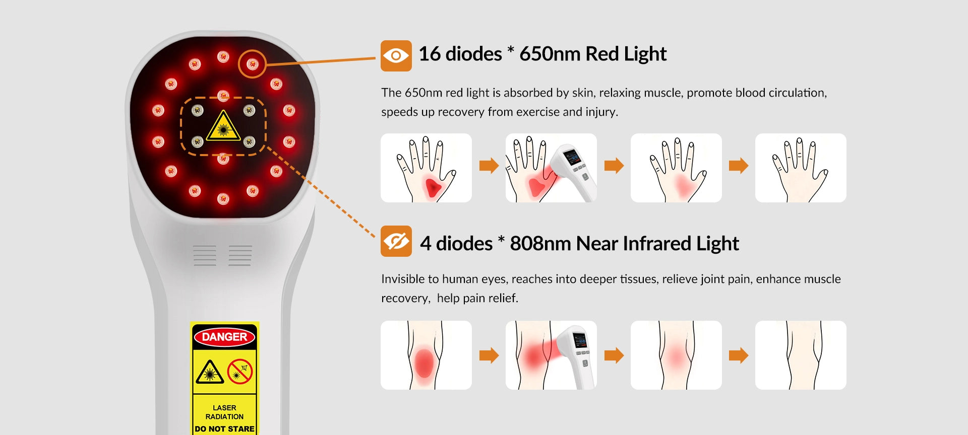 - 660nm*16pcs+810nm*4pcs+980nm*4pcs