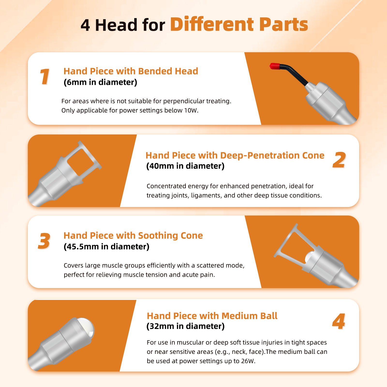 • Total Customization: Professional configuration with multiple spot sizes of 6mm, 32mm, 40mm, and 45mm, effectively treat anything from small, focused areas to larger body surfaces, ensuring maximum efficiency and clinical outcomes.