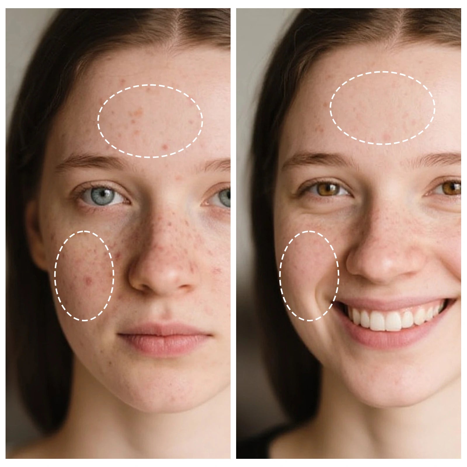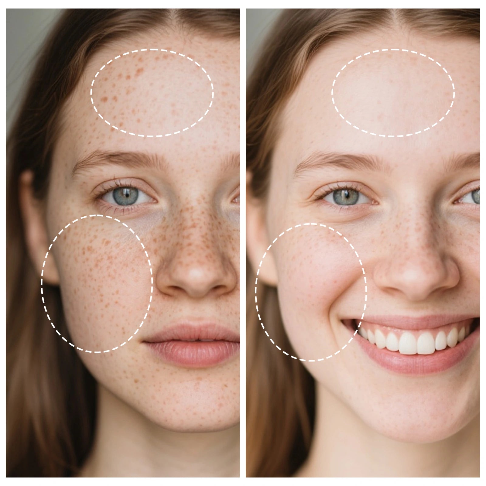 This wavelength targets melanocytes (the cells that produce pigment), helping to fade dark spots and hyperpigmentation for a visibly brighter and more even skin tone over time.