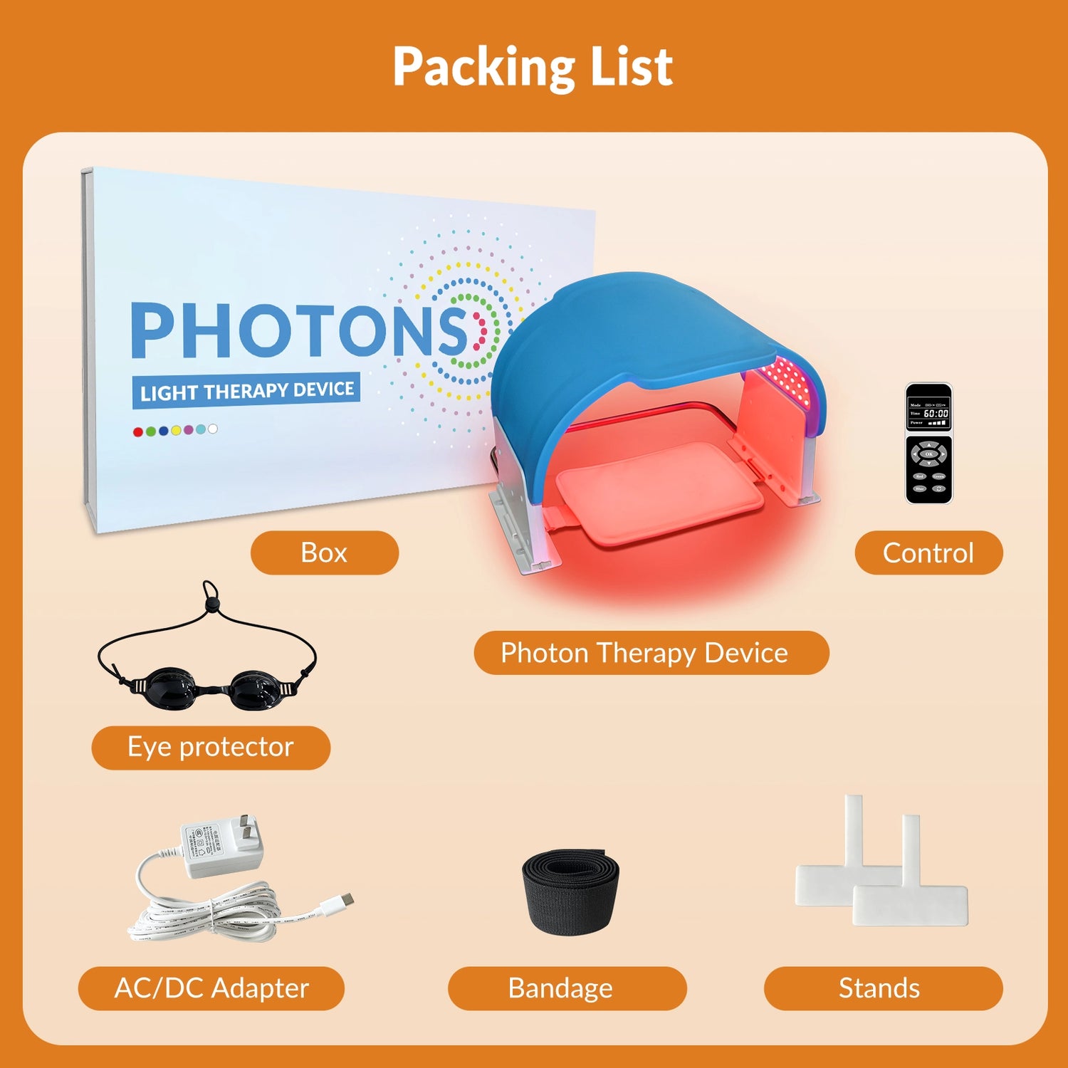 •Toponechoice 7 Colors Light Therapy Device: This LED mask features 990 light beads and 7 different wavelengths of light, combined with near-infrared technology. LED facial mask light therapy helps promote blood circulation, tighten the skin, and address various skin concerns—from reducing wrinkles and inflammation to treating acne, minimizing pores, and improving uneven skin tone.•Multi-function LED Lighted Face Mask: Toponechoice red light mask for face Equipped with Controller. OK: Turn On/Off device/light; Mode: CW and PW two modes(PW is superior to CW for most applications); Time: 1-60 minutes adjustable; Power: 25% 50% 75% 100% four levels adjustable; 7 colors for your choosing (7 colors led face mask can cycle work one by one). This red light therapy device effectively addresses various facial skin concerns, making it a convenient at-home solution for professional-grade care anytime, anywhere.•Comprehensive Full-Body Care: Designed for full-body application, this LED pod is suitable for all skin types. It helps improve the appearance of common concerns such as fine lines, uneven skin texture, dullness, dark spots, mild redness, and acne-related blemishes. The energy from the LED lights penetrates the skin to stimulate circulation, promote tightening, and enhance overall skin tone. •Easy to Use: Our professional LED light therapy machine is easy to operate. After face cleaned, connect the controller. and then press and hold the On/Off button for 2 seconds to turn on the infrared therapy facial device. The user can set the appropriate operation mode and duration according to different situations. The infrared light therapy for face and body is recommended to use 2-3 times a week for 4 weeks, 15-20 minutes each time•Package & Support: Your package includes 1*LED light Therapy Device, 1*Soft Pillow, 2*Stands, 1*Remote Control, 1*AC Adapter, 1*Eye Protector, 1*User Manual, 1*Bandage, 4*Nails, 1*Packing Box. To ensure optimal results, please carefully read the included User Manual prior to your first session. Should you have any questions about your LED light therapy mask, our customer support team is ready to assist you at any time.